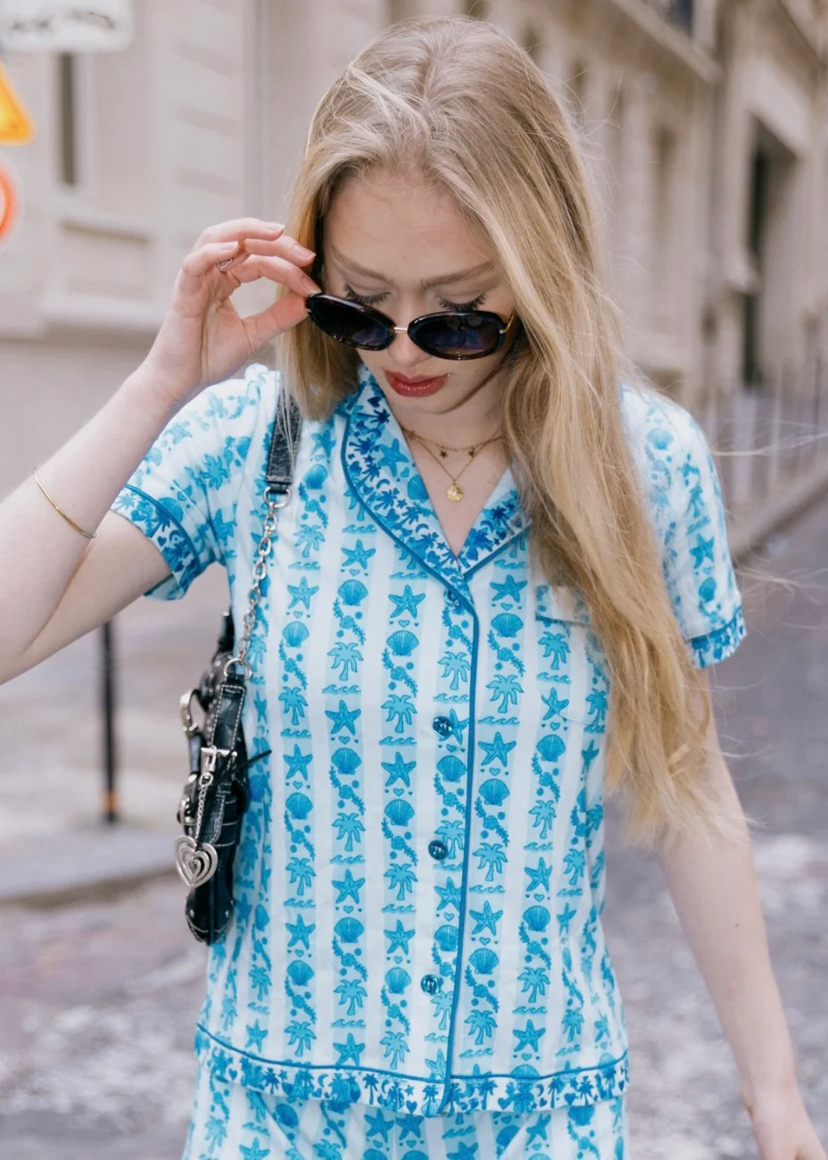 Pink Palm Pajamas in Seabreeze